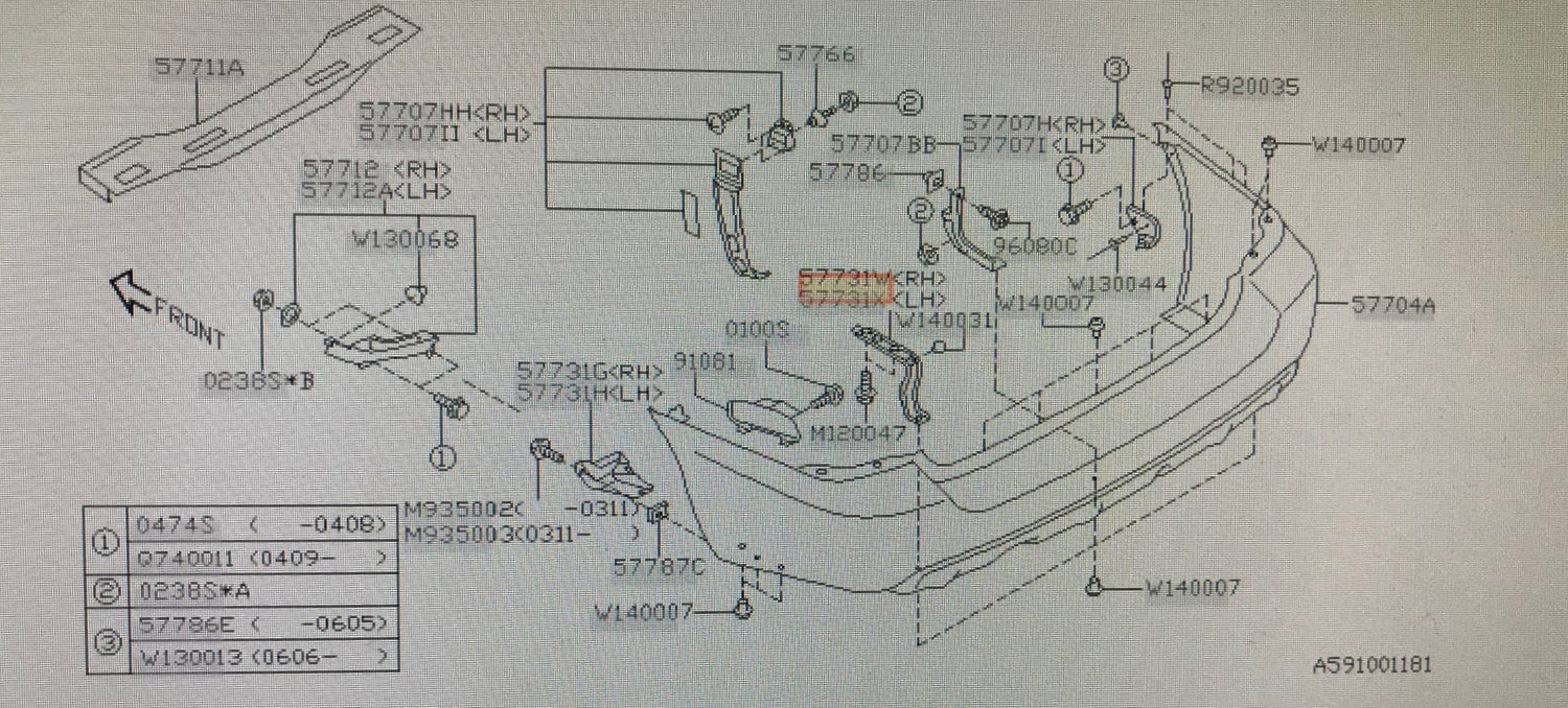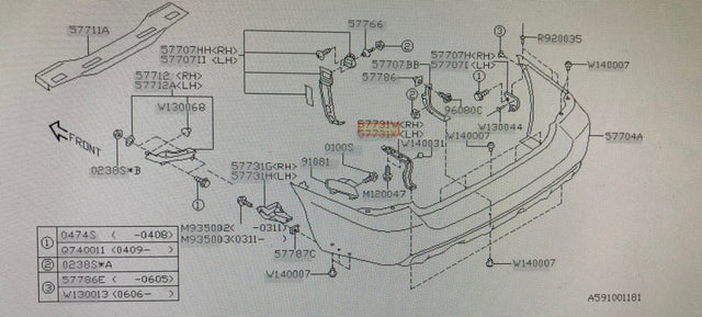 57714SA0209P Subaru Forester Rear Bumper Stay Bracket R/H 2002-2007